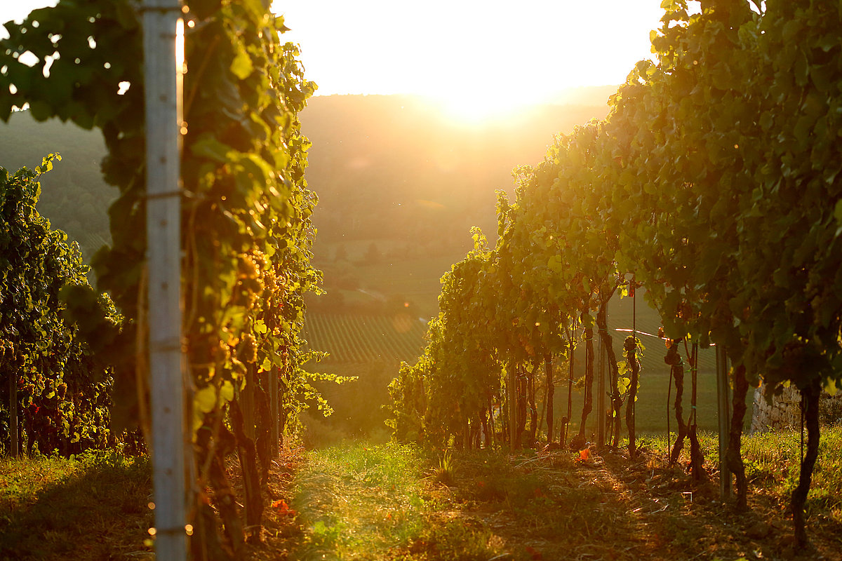 Weinstraße Bad Dürkheim Weinberg Spielberg mit Sonnenuntergang